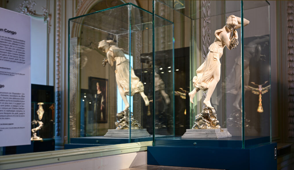 En 1893, l’afflux massif de tonnes d’ivoire du Congo arrivant à Anvers, inspire les critiques de la presse étrangère, vite relayées par des journaux belges, dénonçant les exactions dont sont victimes les indigènes dans la colonie de Léopold II. Secrétaire de l’État indépendant du Congo (EIC), Edmond van Eetvelde a l’idée de fournir gratuitement des défenses d’éléphants à des sculpteurs belges, ceux-ci s’engageant à les sculpter et à présenter leurs créations à l’exposition universelle d’Anvers (1894), puis à celle de Bruxelles (1897) dont la section coloniale est organisée à Tervuren. Connue depuis l’Antiquité grecque (cf. statue d’Athéna au Parthénon) la technique de sculpture chryséléphantine, en vogue dans nos pays au Baroque, était ensuite tombée dans l’oubli. Les sculptures chryséléphantines réalisées à partir de défenses d’éléphants du Congo et exposées dans le salon d’honneur du pavillon colonial de Tervuren sont des créations de grands noms de l’art belge : Fernand Khnopf, Constantin Meunier, Julien Dillens, Thomas Vinçotte (futur sculpteur du monument équestre de Léopold II, place du Trône, objet de polémiques ces dernières années)… Parmi ceux-ci deux artistes juifs : Philippe Wolfers et Charles Samuel .