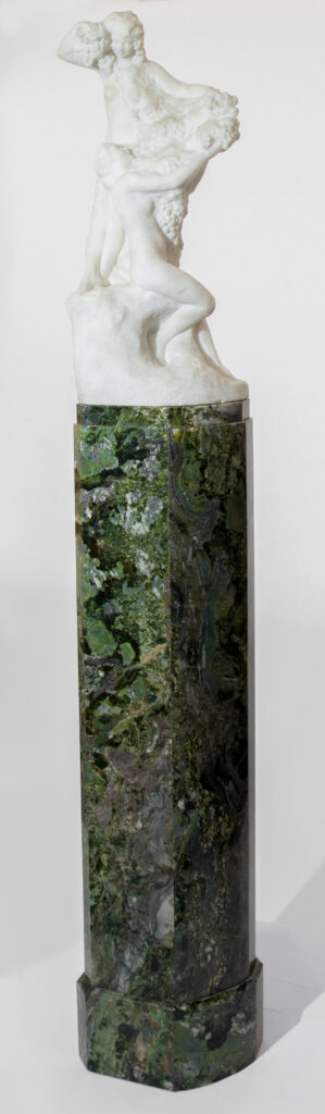 Fils d’un orfèvre juif de Minden (Westphalie), venu s’établir à Bruxelles où il fonde en 1850 un atelier d’orfèvrerie-joaillerie, Philippe Wolfers (1858-1929) étudie à l’Académie des Beaux-Arts de Bruxelles (1873-1877), puis rejoint l’entreprise familiale à laquelle il va donner un rayonnement artistique international, exerçant ses talents de joaillier, sculpteur, médailleur, architecte d’intérieur et artiste industriel. Ses premières créations l’inscrivent dans le courant historiciste et romantique. Wolfers découvre les arts de l’Orient et dès 1884 crée des bijoux japonisants. Comme d’autres artistes, il reçoit des défenses en ivoire du Congo et crée alors des sculptures chryséléphantines présentées aux expositions internationales d’Anvers (1894) et de Bruxelles (1897). Associé à ses frères Marc (dit Max) et Robert, Philippe oriente la production de la Maison Wolfers frères vers l’Art nouveau, puis l’Art déco. Il enseigne à l’École Bischoffsheim, dont il est administrateur, et succède à Charles Wiener à la présidence du Comité des Apprentis de la Jeunesse israélite (1888). Il est Franc-maçon, membre de la loge des Vrais Amis de l’union et du progrès réunis, dont font partie d’autres artistes, tel Paul Hankar.
