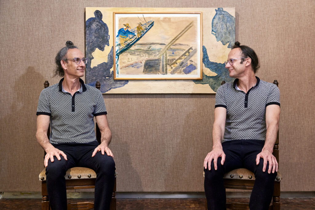 Dans Forget & Remember, Gil & Moti adoptent une approche autobiographique dont le père de Gil, Yitzhak, et la mère de Moti, Naomi, sont les protagonistes, accompagnés d’objets de leurs collections respectives, ingénieusement mis en scène. Des vidéos et un audioguide réalisées par le duo d’artistes plongent le visiteur dans les histoires et anecdotes associés aux objets de ces collections très différentes. Yitzhak collectionne des objets hétéroclites, des objets du quotidien, qu’il a utilisé lui-même ou trouvé en rue. La collection de Naomi se compose de peintures d’artistes israéliens célèbres de la période 1930-1970. Au-delà des souvenirs intimes, ces histoires et anecdotes évoquent la création difficile de l’État d’Israël et son développement, de 1948 à nos jours. Tous ces récits associés aux objets et œuvres d’art de ces collections familiales permettent à Gil & Moti de remonter le temps, d’évoquer leurs souvenirs d’enfance, leur éducation et celle de leurs parents… À travers ces fragments de mémoires intimes, ils évoquent l’histoire migratoire de leurs familles juives ainsi que toute la complexité de leur propre identité et de la société de leur pays natal, Israël. L’explosion de la pandémie et les confinements ont convaincu Gil & Moti de l’urgence de ce projet : Pendant la « distanciation sociale », nous avons réalisé que c’était peut-être la dernière chance de poser à nos parents encore en vie des questions que nous n’osions pas leur poser auparavant. C’est notre œuvre la plus personnelle et autobiographique à ce jour et elle n’aurait pu être réalisée à un autre moment. Jusqu’à présent Gil & Moti fondaient leur travail sur leurs similitudes et leur dualité. Forget & Remember, est une recherche de leurs différences. Ces garçons juifs ont tous deux grandi dans les années 70 et 80 en Israël, mais dans deux familles socialement très différentes comme en témoignent en début d’exposition, les maquettes de leurs demeures familiales. Gil vivait dans une maison de 37 m carrés avec son frère, sa sœur et ses parents. Moti son frère, ses deux sœurs et leurs parents habitaient une villa cossue, avec du personnel de maison.