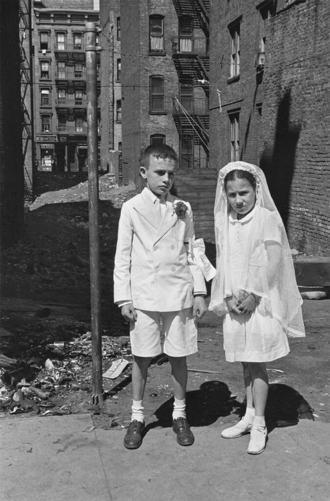 Née à Bensonhurst (Brooklyn), cette fille d’immigrants juifs de Russie, passionnée de photographie, abandonne ses études secondaires pour travailler dans le studio d’un photographe de quartier. Elle s’achète un appareil photo 35 mm d’occasion et se lance dans la photographie sociale. Arpentant les rues, de Manhattan, du Lower East Side à Spanish Harlem et jusqu’au Bronx, elle documente la vie populaire des quartiers défavorisés où les jeux d’enfants débordent des trottoirs sur les terrains vagues ou partent même à l’assaut de maisons abandonnées. Levitt s’intéresse aussi aux graffitis tracés à la craie sur les murs lépreux. Elle photographie les bandes d’adolescents et les adultes, « Noirs » ou « Blancs », pris dans la « banalité » du quotidien, en pleine conversation sur le pas de leur porte ou observant la rue de leur fenêtre… Pas de misérabilisme ni de voyeurisme dans ses images qui expriment son empathie pour ces « gamins de rues » et toutes ces « petites gens » dont elle capture les visages et la gestuelle. Ses sujets, souvent conscients de sa présence, participent parfois à ses photographies d’un regard ou d’un sourire. Des enfants, visiblement intrigués ou fascinés par la photographe, prennent parfois des poses inspirées des héros de films de gangsters qui crèvent alors l’écran.