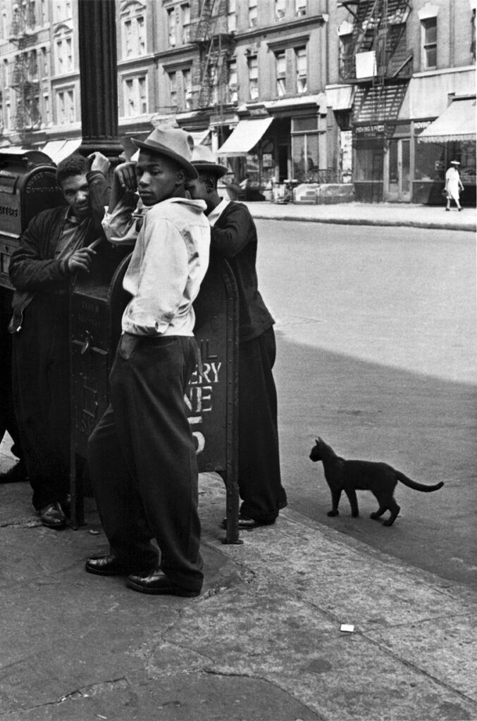 Toutes ces influences se retrouvent dans son regard de photographe, de même que sa passion pour la danse. Ses photographies d’enfants semblent parfois chorégraphiées. Helen Levitt présente la rue comme un paysage quasi théâtral au sein duquel elle traque les interactions et les plus petits gestes des jeunes protagonistes… Certes, elle n’est pas la seule pionnière de la Street Photography. Animés par une volonté commune d’associer étroitement l’engagement social aux recherches esthétiques dans l’approche visuelle des rues new-yorkaises, des photographes associés à la Film and Photo League, fondent en 1936 la Photo League. Les activités culturelles et l’enseignement de la Photo League vont inspirer toute une génération de jeunes photographes, amateurs ou professionnels, souvent juifs, tels Walter Rosenblum, Morris Engel, Aaron Siskind, Jack Manning (Jack Mendelsohn), Lou Bernstein, Sol Libsohn, Louis Stettner… et aussi Weegee (Arthur Fellig). Seule véritable école de photographie dont l’enseignement et les labos sont ouverts à tout amateur de photographie et à une époque ou le photographe est rarement considéré comme un artiste, cette institution démocratique fonde un nouveau style dans la photographie documentaire et sociale : la Street Photography new-yorkaise.