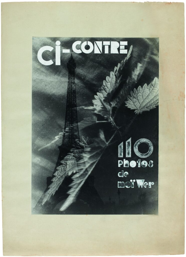 En 1929, Moshe Vorobeichic termine le premier cycle d’études du Bauhaus, puis part à Paris. Installé à Montparnasse, il fréquente les cafés de la Bohème: la Coupole, le Dôme… et se lie d’amitié avec André Malraux. Il copie les toiles des grands maîtres au Louvre et suit les cours de l’Ecole technique de photographie et de cinématographie, rue Vaugirard ainsi que l’enseignement de Fernand Léger à l’Académie Moderne. Publié en 1931, aux éditions Jeanne Walter, avec une préface de Léger, le livre Paris. 80 photographies de Moï Veraffirme sa vision avant-gardiste. Les cadrages insolites, les surimpressions et le graphisme de la mise en page traduisent le rythme trépidant de la grande métropole. Paris est une tour de Babel de l’ère machinique dont Moshe fait l’éloge du dynamisme visuel. Devenu photographe de presse à l’agence Globe-Photo, “Moï Ver” publie ses photos dans la presse périodique française : VU, Paris Soir, Arts et Métiers graphiques, Bifur... Son nouveau projet de livre photo, CI-CONTRE,doit paraître en Allemagne avec le soutien de l’historien d’art munichois Franz Roh. L’arrivée au pouvoir d’Hitler empêche la publication de ce livre novateur. En couverture de la maquette, un montage par surimpression de deux négatifs: une vue en contre-jour de la tour Eiffel et un gros plan de feuilles d’orties; la mécanique face à la nature.
