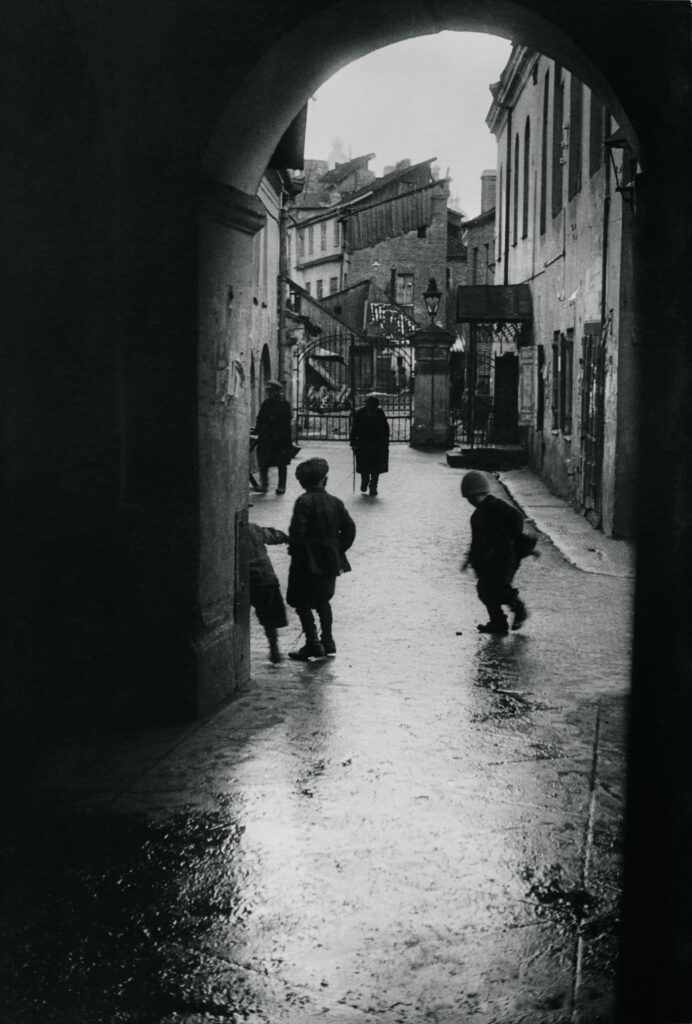 Moshe découvre les films d’Eisenstein, les photomontages de John Heartfield et El Lissitzky, et se tourne vers la photographie. Il réalise un projet photo sur le quartier juif de Vilna. Exposé par l’Union des artistes juifs de Vilna, puis au 16e Congrès Sioniste de Zurich en 1929, ce projet est publié en 1931 par la maison d’édition suisse Orell-Füssli dans sa série Schaubücher, collection de livres photo dirigée par l’historien d’art juif Emil Schaeffer : Rehov HaYehudim BeVilna/Ein Ghetto im Osten – Wilna. La mise en page et les montages photographiques de cet ouvrage publié en trois versions bilingues (hébreu/allemand, yiddish/allemand et hébreu /anglais) adoptent l’esthétique avant-gardiste du mouvement de la Nouvelle Vision en photographie. Vues plongeantes des rues, détails d’architecture, portraits d’habitants: les images contrastent la pauvreté du quartier juif et la richesse culturelle du judaïsme à Vilna, “la Jérusalem de Lituanie”. Le traitement moderne du sujet (vues en plongée, plans rapprochés, études de matières, recadrages, collages et photomontages) assure le dynamisme de ce livre photo inspiré par l’enseignement de Josef Albers au Bauhaus. Moshe réalise aussi des projets photo pour le YIVO, l’institut scientifique juif fondé en 1925 à Vilna.