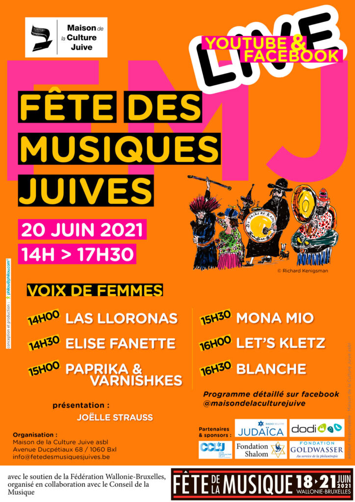 Covid 19 oblige, la FMJ 2021 vous est proposée chez vous, dans vos salons ou vos jardins « Online » sur YouTube « live » depuis la grande synagogue Art-Déco de la rue de la Clinique, bien connue de la communauté juive de Bruxelles.